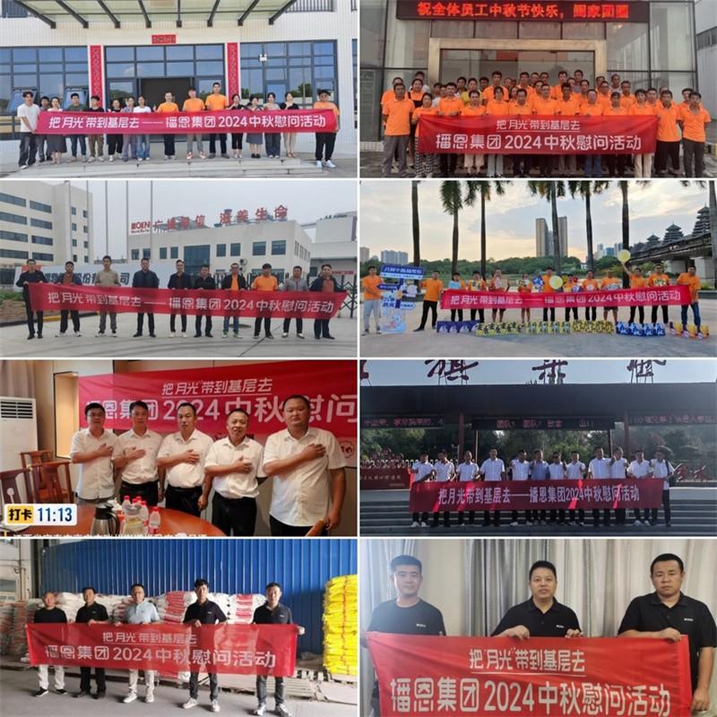 9月17日,中秋佳節(jié)當(dāng)天,集團高層領(lǐng)導(dǎo)組成慰問團,分赴各生產(chǎn)工廠和營銷區(qū)域,與一線員工共度佳節(jié)。慰問活動豐富多彩,或舉杯同飲,品味舌尖美味;或登高望遠(yuǎn),踐行 "播恩三修" 健康理念;或放聲高歌,抒發(fā)內(nèi)心情懷。禮物與美食相伴,笑容與明月同輝,傳遞著集團對一線員工最誠摯的關(guān)懷與祝福。