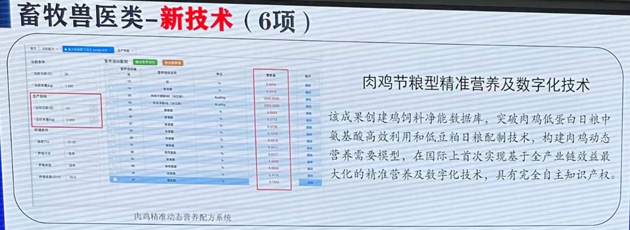 其中,由中國農(nóng)業(yè)大學(xué)動物科技學(xué)院、吉林農(nóng)業(yè)科學(xué)院、北京博亞和訊農(nóng)牧技術(shù)有限公司、全國畜牧總站研發(fā)的“肉雞節(jié)糧型精準營養(yǎng)及數(shù)字化技術(shù)”入選2025中國農(nóng)業(yè)重大新技術(shù)。