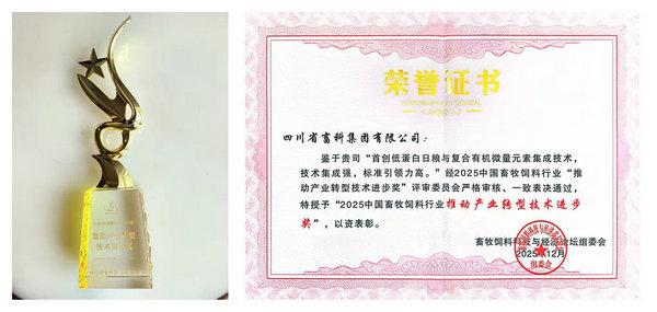 四川省畜科集團(tuán)憑借突出的技術(shù)集成能力、顯著的標(biāo)準(zhǔn)引領(lǐng)作用,首創(chuàng)的低蛋白日糧與復(fù)合有機(jī)微量元素新技術(shù)新產(chǎn)品(該技術(shù)為飼料行業(yè)綠色轉(zhuǎn)型與畜牧業(yè)高質(zhì)量發(fā)展提供關(guān)鍵支撐),榮獲2025中國(guó)畜牧飼料行業(yè)“推動(dòng)產(chǎn)業(yè)轉(zhuǎn)型十大技術(shù)進(jìn)步獎(jiǎng)”,這是對(duì)畜科集團(tuán)科技研發(fā)與產(chǎn)業(yè)化落地成就的高度社會(huì)認(rèn)可,由四川省畜科院營(yíng)養(yǎng)健康研究所湯文杰所長(zhǎng)代表畜科集團(tuán)上臺(tái)授頒領(lǐng)獎(jiǎng)。