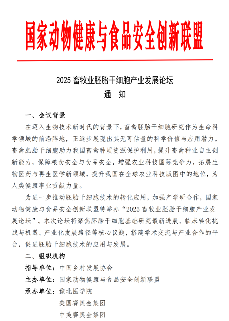 2025畜牧業(yè)胚胎干細(xì)胞產(chǎn)業(yè)發(fā)展論壇邀您相聚鄭州