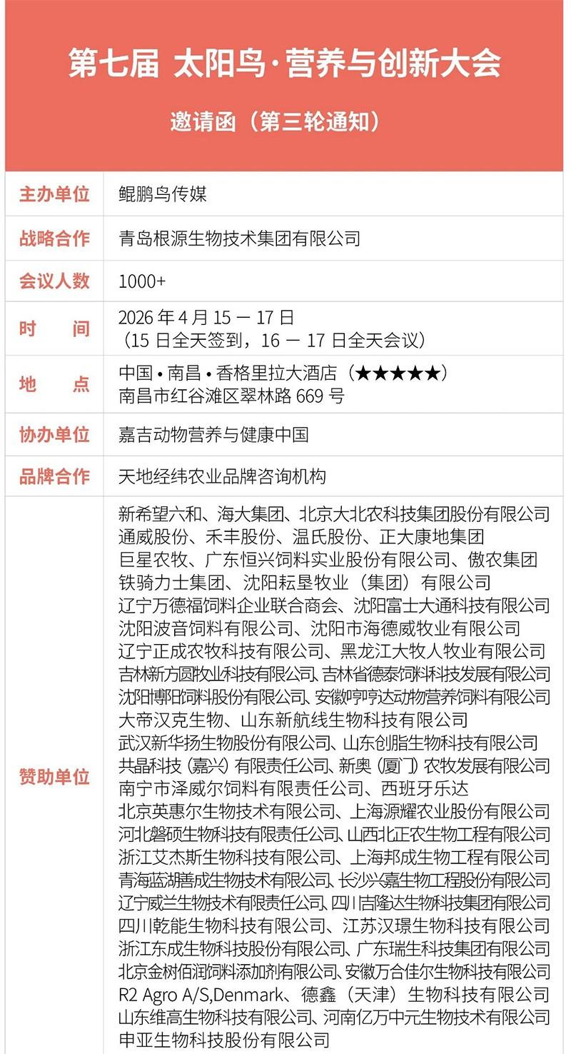 第七屆 太陽鳥·營(yíng)養(yǎng)與創(chuàng)新大會(huì)(第三輪通知)