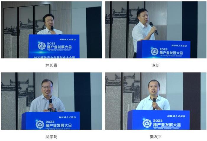 (從左至右、從上至下依次為:中國(guó)農(nóng)業(yè)銀行鄉(xiāng)村振興金融部業(yè)務(wù)管理處副處長(zhǎng)王帥,湖南省畜牧獸醫(yī)研究所總畜牧師、湖南省生豬產(chǎn)業(yè)技術(shù)體系首席專家彭英林,鐵騎力士集團(tuán)董事長(zhǎng)雷文勇,四川省畜科集團(tuán)有限公司董事長(zhǎng)鄺聲耀)
