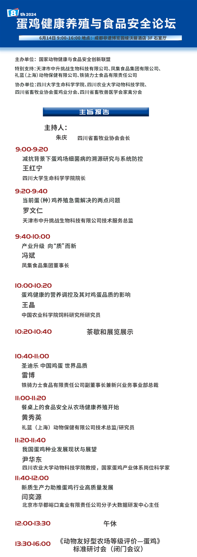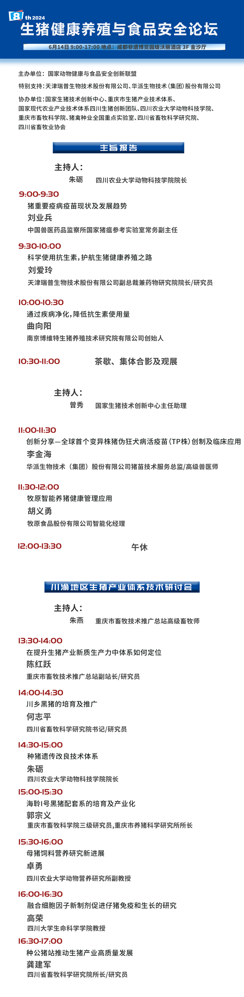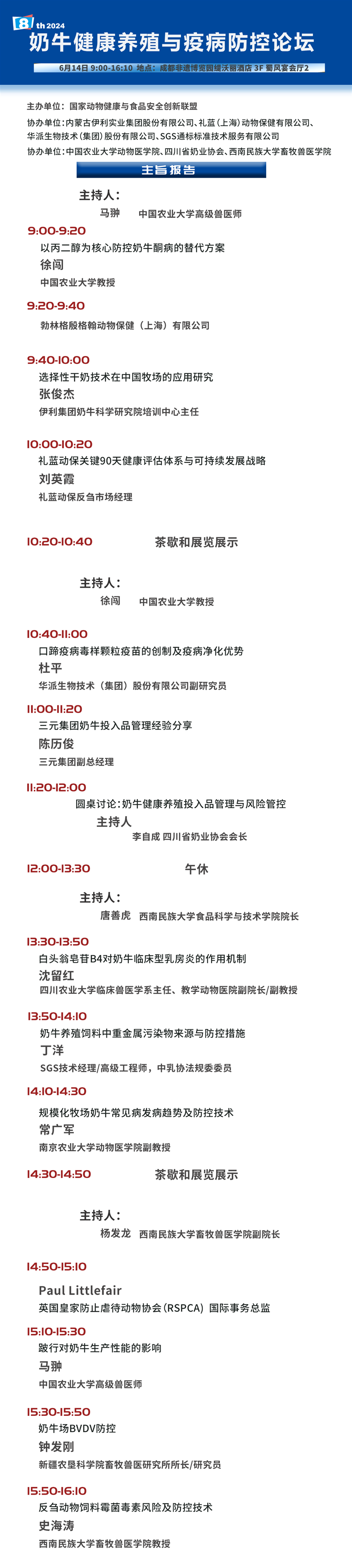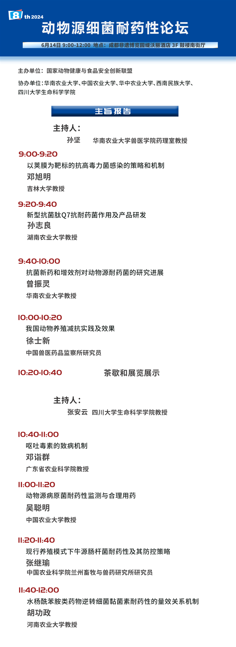 2024年6月,一場盛會(huì)將在成都·非遺博覽園緹沃麗酒店隆重舉行,邀請(qǐng)了150+行業(yè)大咖到場分享,2024年第八屆中國動(dòng)物健康與食品安全大會(huì)全體大會(huì)及十余場論壇活動(dòng)即將精彩綻放。