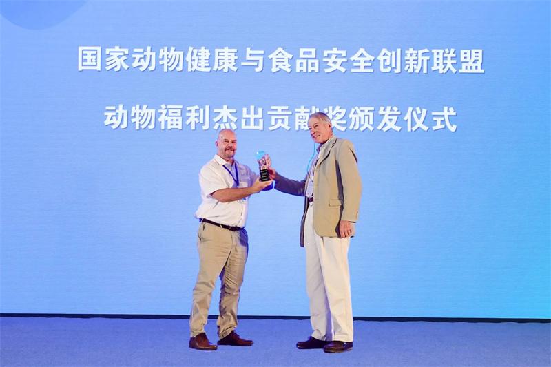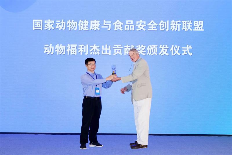 在大會(huì)期間,劍橋大學(xué)動(dòng)物福利資深教授Donald Broom 為英國(guó)皇家防止虐待動(dòng)物協(xié)會(huì)國(guó)際事務(wù)總監(jiān) Paul Littlefair、世界動(dòng)物保護(hù)協(xié)會(huì)中國(guó)代表處中國(guó)首席代表趙中華、世界農(nóng)場(chǎng)動(dòng)物福利協(xié)會(huì)中國(guó)首席代表周尊國(guó)、國(guó)家動(dòng)物健康與食品安全創(chuàng)新聯(lián)盟常務(wù)副秘書長(zhǎng)孫忠超博士頒發(fā)“動(dòng)物福利杰出貢獻(xiàn)獎(jiǎng)”。這一榮譽(yù)的授予,不僅是對(duì)這些杰出人士在動(dòng)物福利領(lǐng)域卓越貢獻(xiàn)的高度認(rèn)可,更是激勵(lì)著更多人投身于動(dòng)物福利事業(yè),為動(dòng)物的福祉不懈努力。